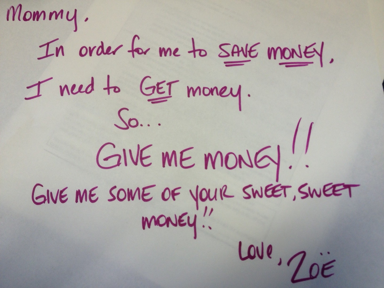 She returned with a big smile and this note demanding “read it”
